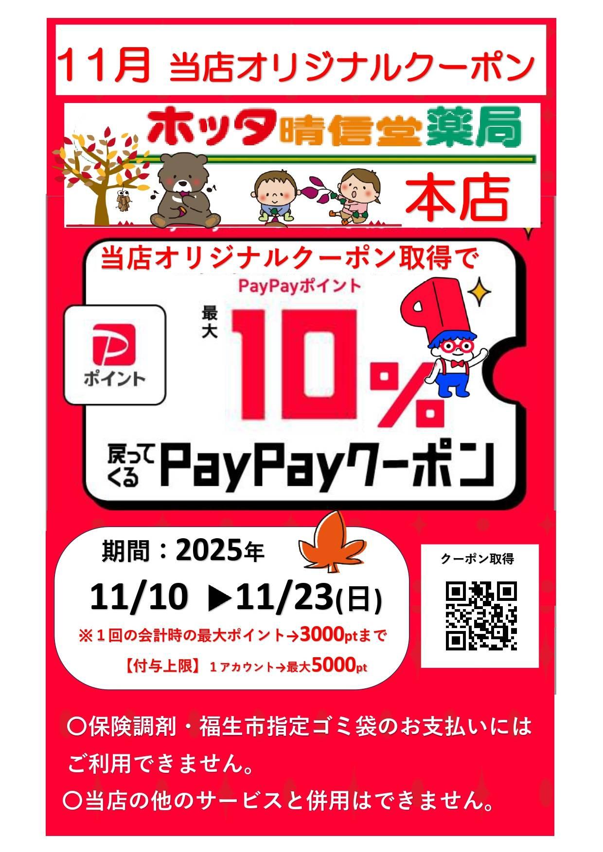 期間限定で、PayPayクーポンをご利用いただくとお会計金額の最大10%がポイントで戻ります!